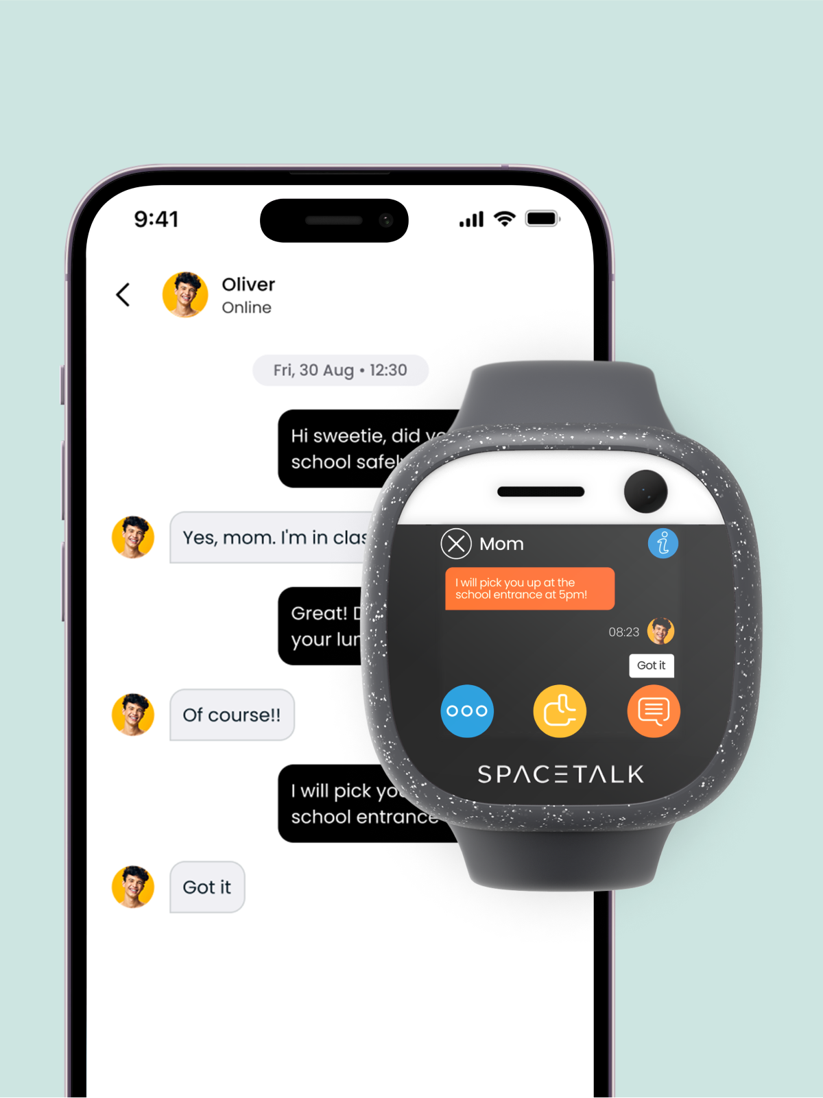 Følelser: Når dit Spacetalk-ur er parret med din Spacetalk-app, kan du få opdateringer om, hvordan dine børn har det. Giv dem tryghed, når de har mest brug for det. (Kun Adventurer-smartwatches.)