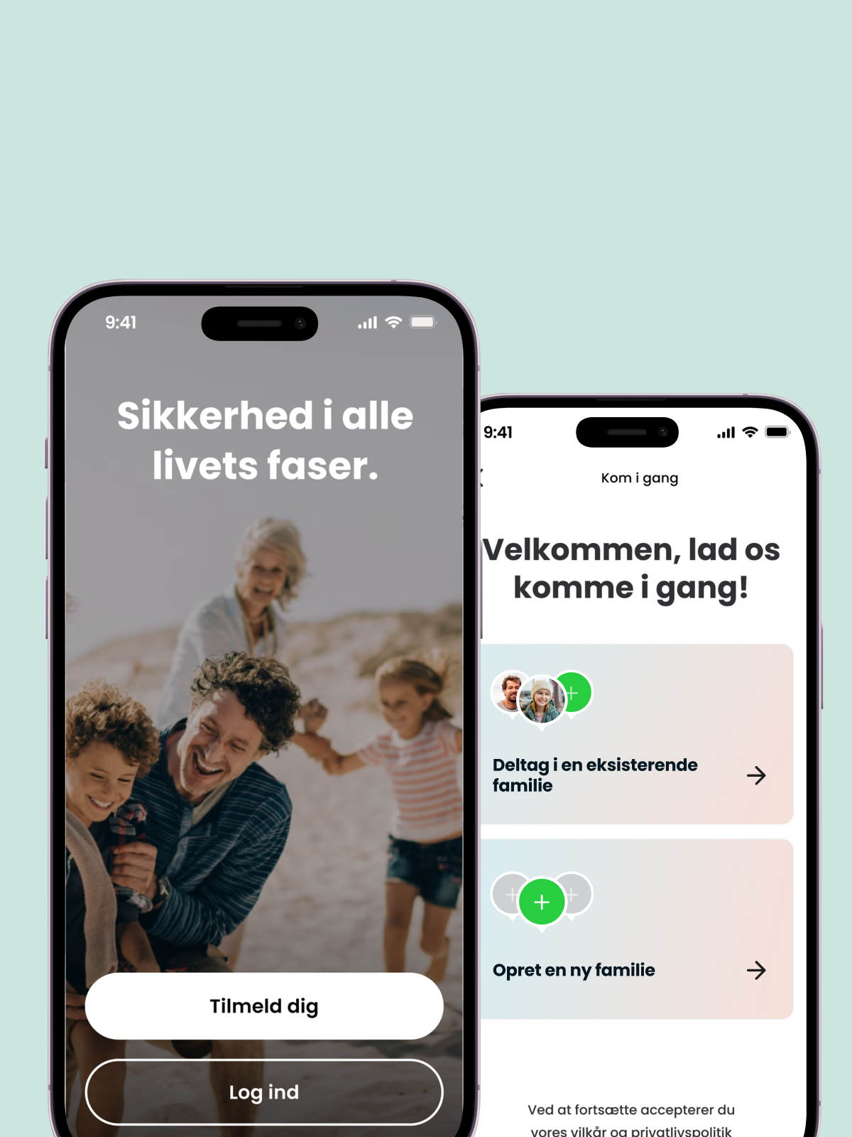 Tryk på 'Tilmeld dig' og derefter på 'Opret en ny familie'.