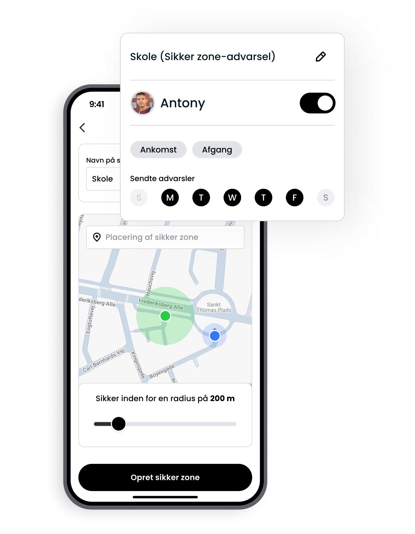 Sikre zoner med advarsler: Opsæt virtuelle grænser på et kort omkring lokationer. Modtag advarsler, når forbindelser går ind i eller forlader bestemte områder.