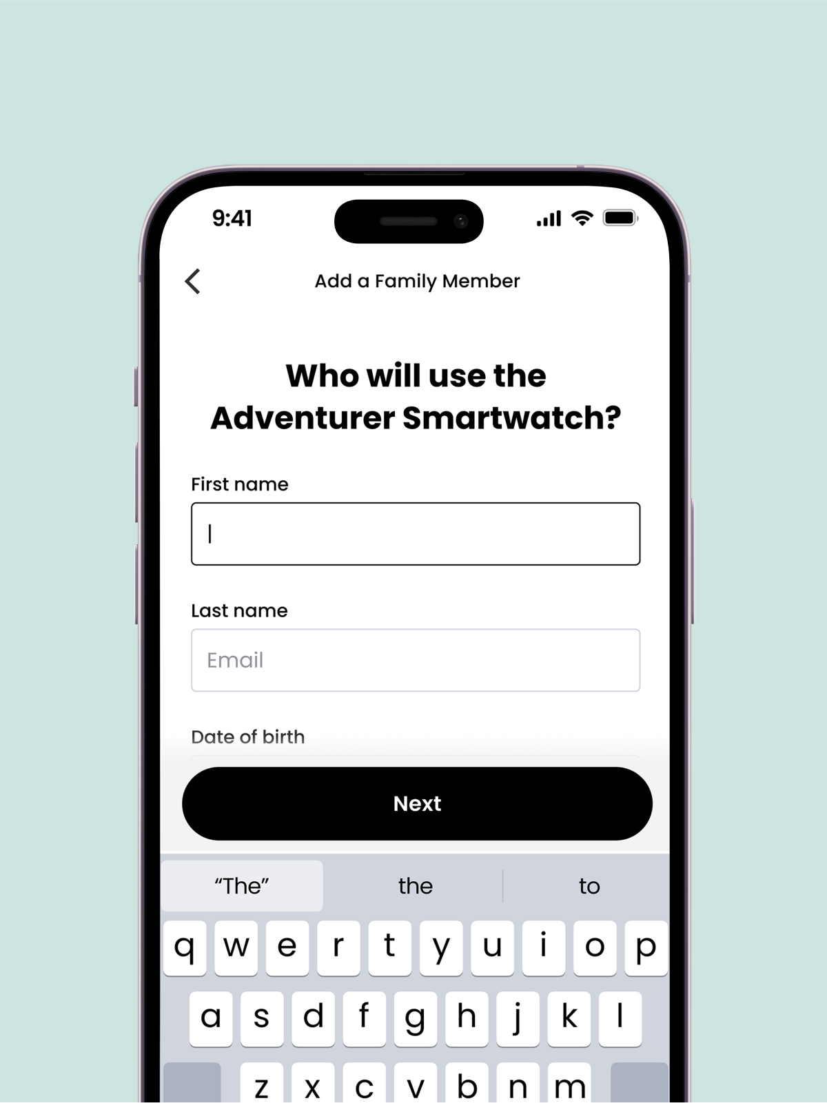 Følg anvisningerne for at oprette din familie. Indtast dine egne oplysninger som forælder i familien. Du bliver bedt om at indtaste barnets oplysninger, når du parrer uret.