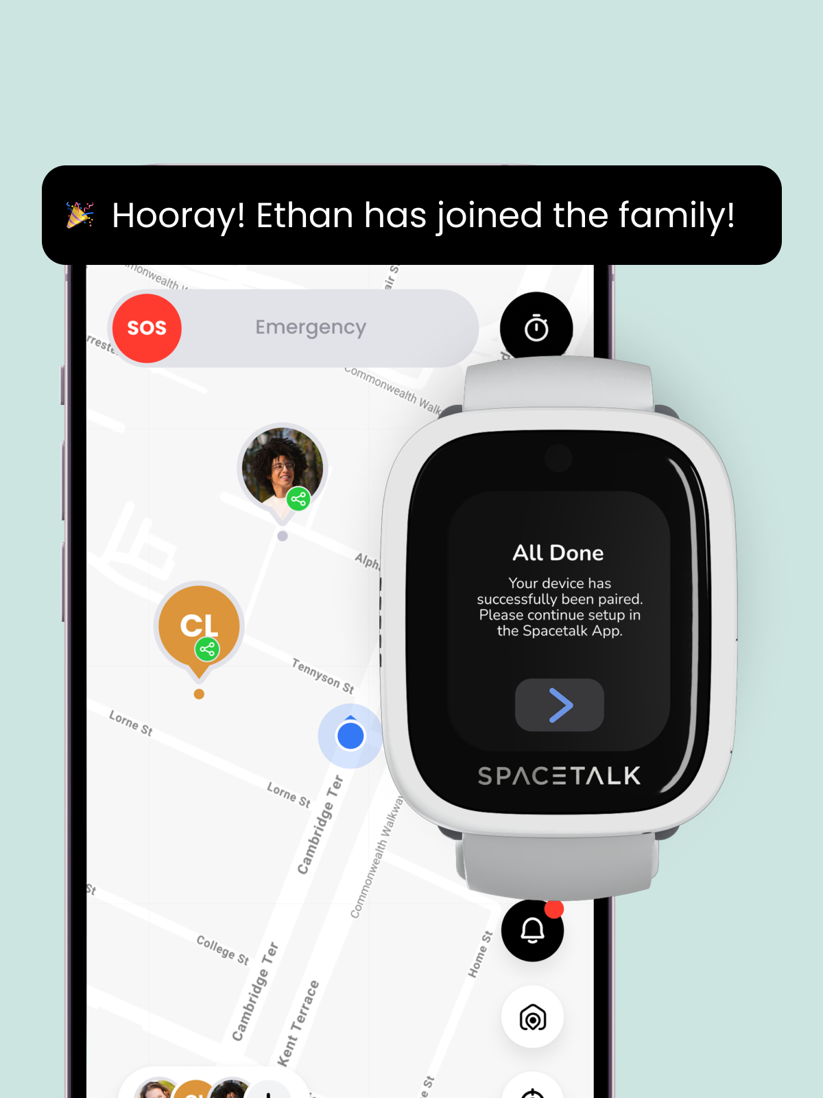 Trusted contacts can be reached immediately when needed. Anyone you add to your Spacetalk family can also be set as a trusted contact.