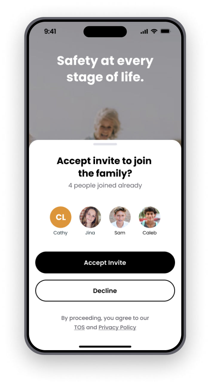 Select the trusted contacts from your phone's contact list. We’ll invite your trusted contacts via SMS to download the app and join your family.