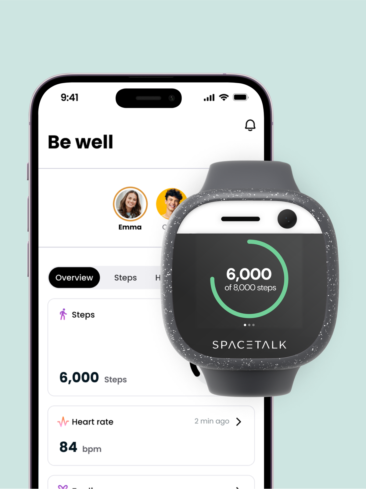 Sentimientos: Una vez que tu reloj Spacetalk esté emparejado con tu App Spacetalk, podrás recibir actualizaciones sobre cómo se sienten tus hijos. Ofréceles tranquilidad cuando más lo necesiten. (Sólo relojes inteligentes Adventurer).