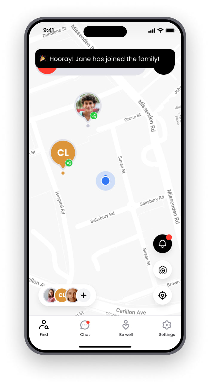 Vous disposez désormais d'un réseau de soutien pour localiser, connecter et protéger les enfants, les adolescents, les parents et les personnes âgées sur n'importe quel appareil.