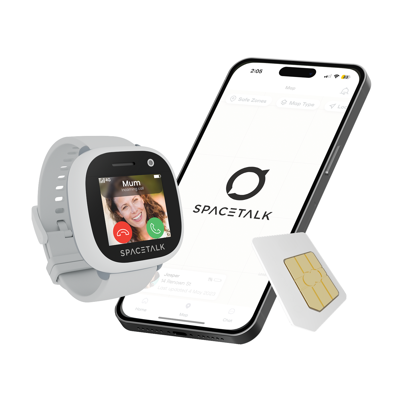 De Spacetalk smartwatch is voor de belangrijkste functies afhankelijk van mobiele netwerktoegang. Dit is wat de SIM mogelijk maakt: