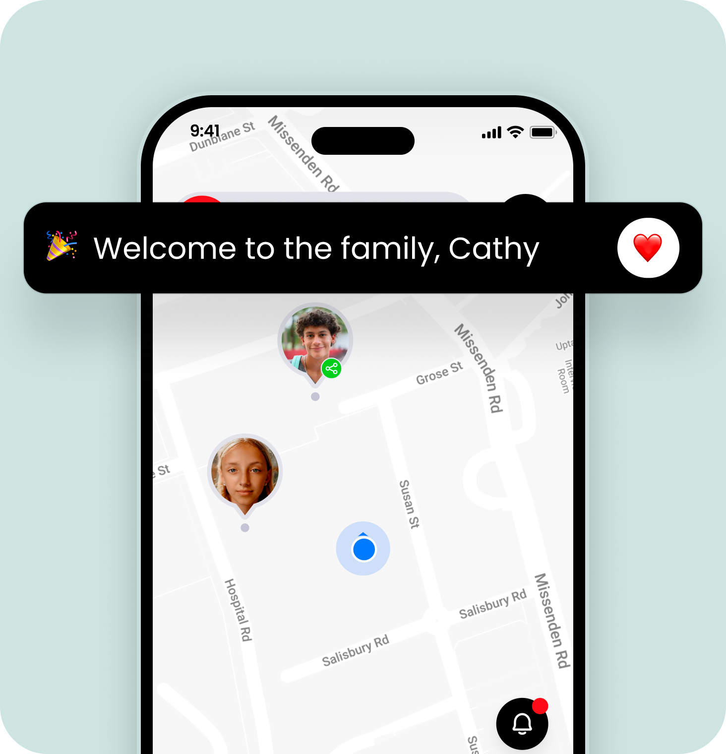 Legg til venner og familie fra telefonens kontaktliste, så blir de invitert til å laste ned appen og bli med deg og familien din.