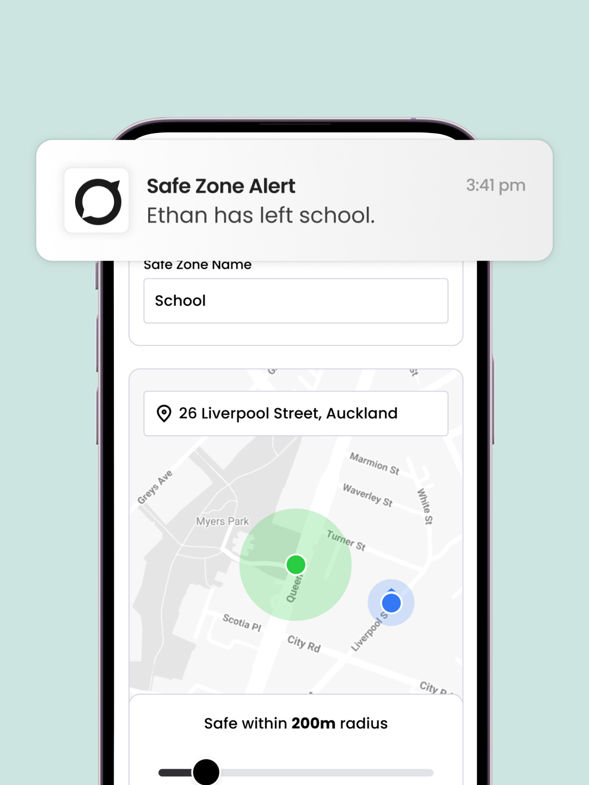 Få varningar när anslutningar går in i eller lämnar angivna områden. På så sätt kan du känna dig trygg med att dina nära och kära är i säkerhet.